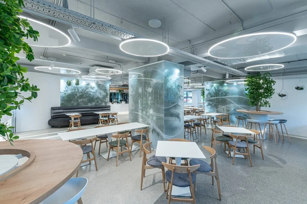The campus that we ended up updating with our proposed design is a large business area in Bucharest. The buildings already exist, but the client specifically required updating the facades and some interiors, while keeping the same organic design language that we’ve used for the landscape. Connecting these buildings in an intricate way kept all of us highly motivated and creative, as we had to work with large scale concepts, as much as with very small details.